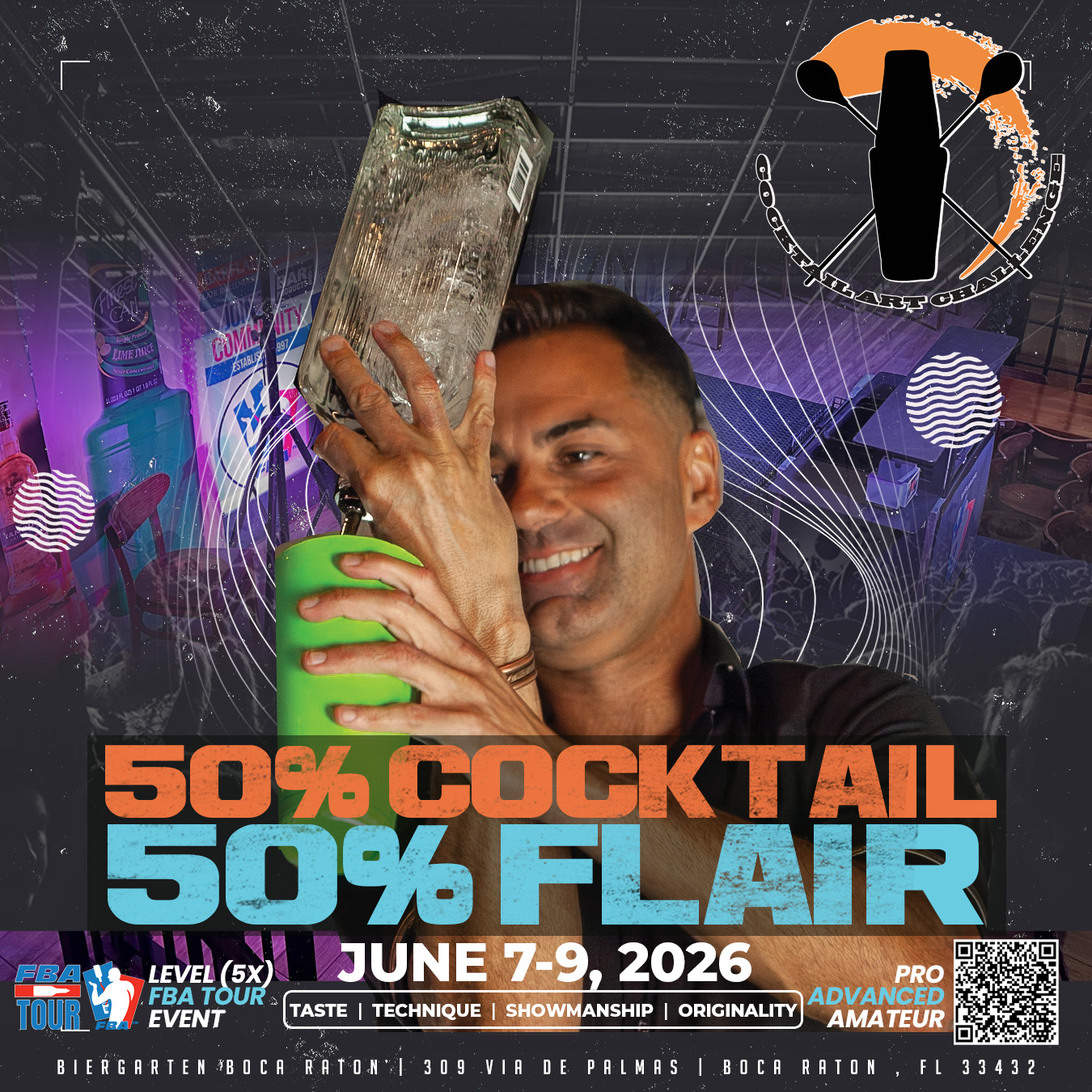 In honor of the fourth NATIONAL FLAIR BARTENDER’S DAY on June 10, 2026 we welcome you back to the Cocktail Art Challenge June 7-9, 2026, where we challenge you to create your best cocktail art while entertaining us on stage with the art of Flair for the crowd and the judges. What will you create?